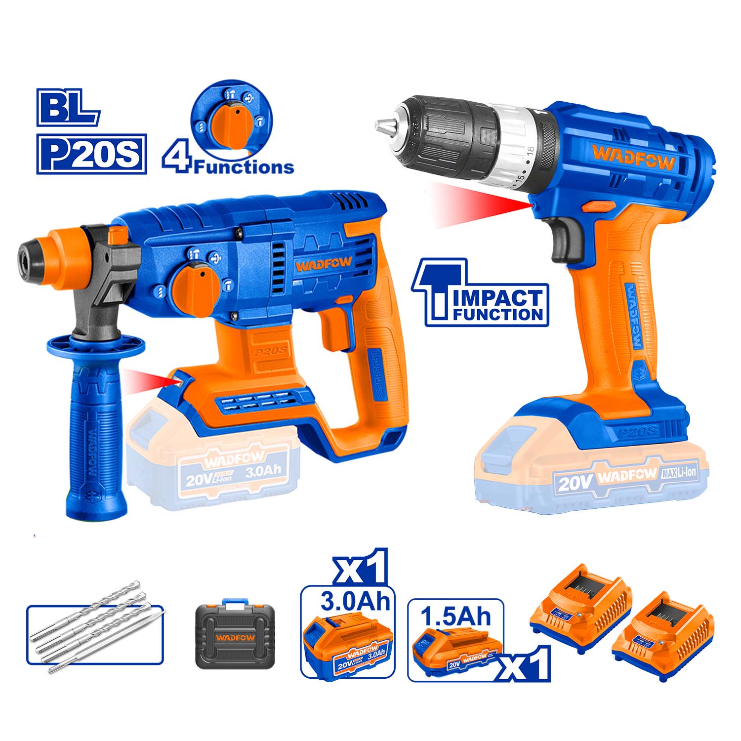 WADFOW Cordless Impact Drill with Hand Tool Set
